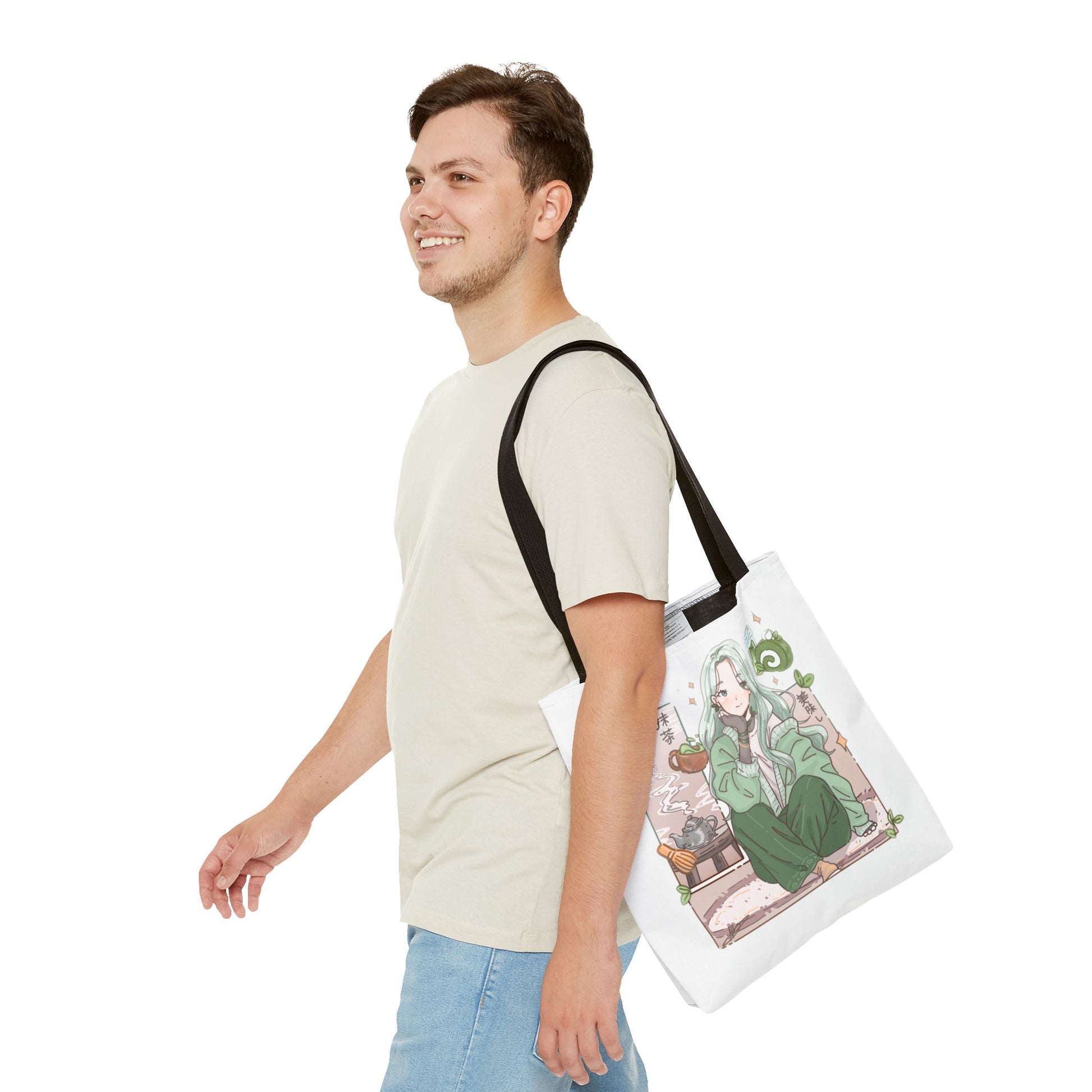 Anime Girl Green Aesthetic Tote Bag – Cozy Kawaii All-Over Print Tote
